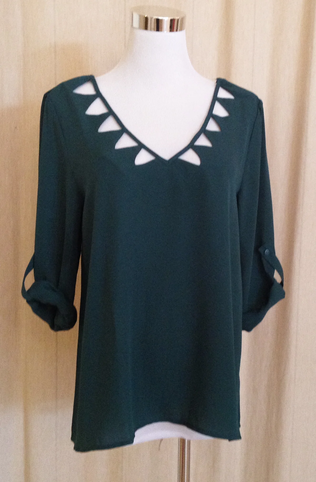 We have some lovely items in this week at Meadow. A elegant teal green blouse with cut-out details at the neck, a wrap dress in a pretty speckled print, a vivid magenta dress with ruffled sleeves, and a v-neck shift dress in a rich Autumnal print.
